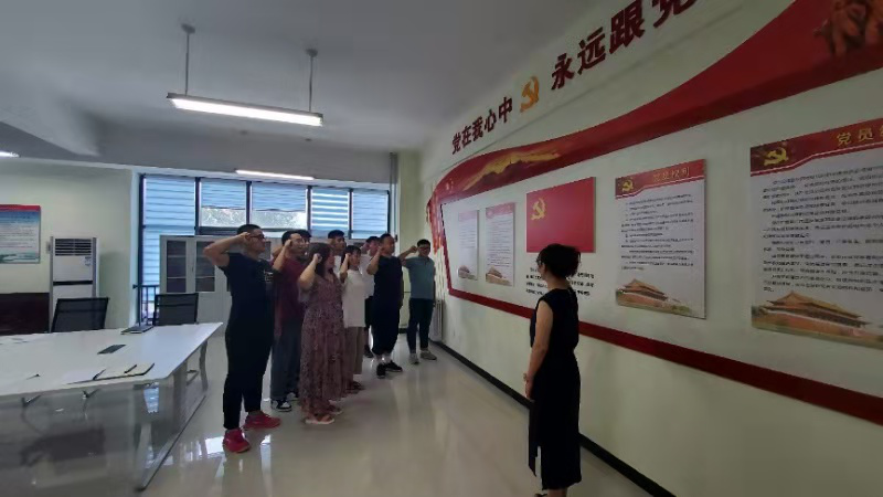 最后,由学生党支部书记王心心带领全体党员重温了入党誓词,使自身信念更加坚定,更增强了共产党员的责任与担当意识。在场各位将以实际行动证明,战“疫”岗位有我,以实际行动向中国共产党成立99周年献礼。