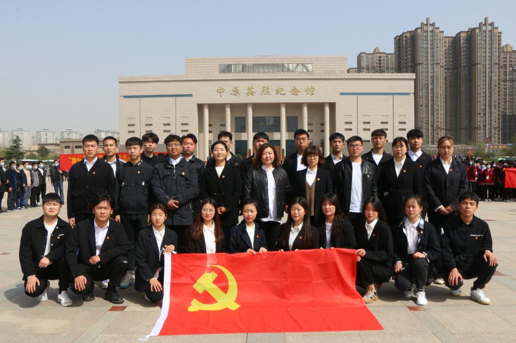在革命先烈纪念碑前,全体人员敬献了鲜花并鞠躬致敬,向革命先烈表达深切的缅怀和崇高的敬意。在参观中原英烈纪念馆时,学生党支部书记王心心现场为党员和入党积极分子讲党课、讲党史,带领大家重温了京汉铁路工人大罢工等革命故事。最后,全体党员在纪念馆面向党旗庄严宣誓,重温入党誓词,表达为共产主义事业奋斗终身的决心。
