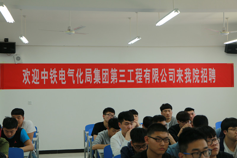 4月18日下午,中铁电气化集团第三工程有限公司电力变电分公司人力资源部王学礼部长等一行三人莅临我院举行专场招聘会。