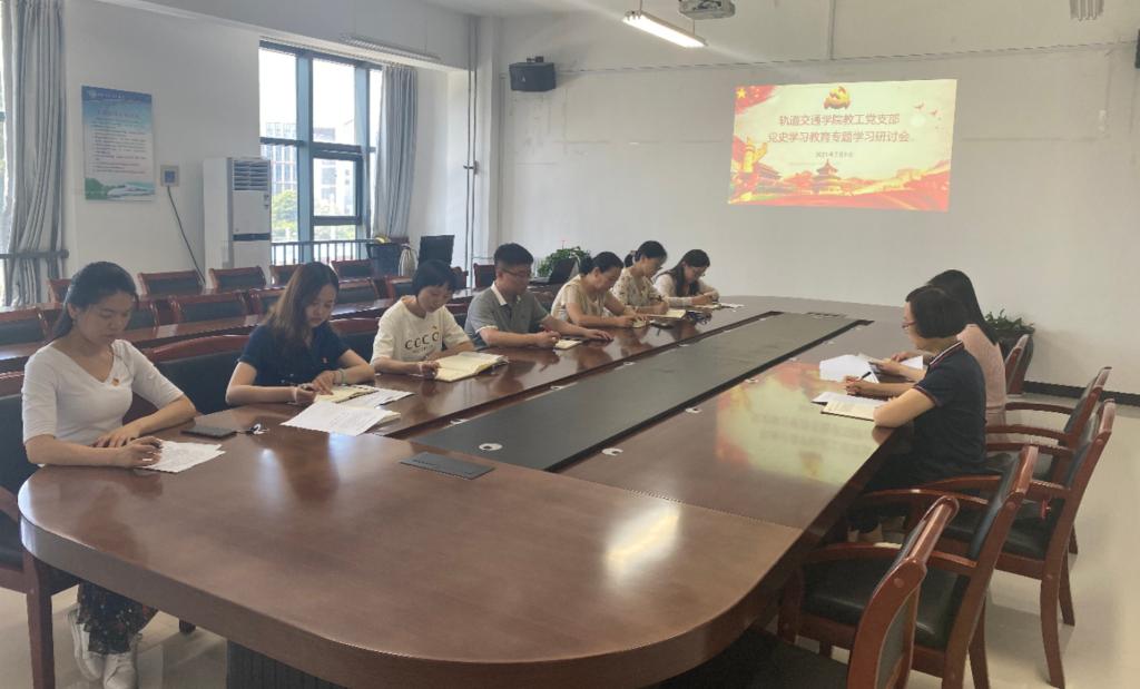 根据学校党委中心组(扩大)党史学习教育专题学习研讨会议精神,结合我院党史学习教育工作安排,近日,轨道交通学院党总支组织教工党支部、学生党支部分别召开党史学习教育专题学习研讨会,全体党员参加了会议。