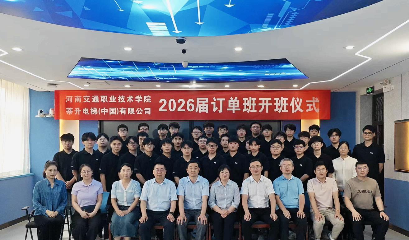 5月28日下午,轨道交通学院与蒂升电梯(中国)有限公司举办订单班开班仪式。蒂升电梯(中国)有限公司郑州分公司经理张鹏飞、人力资源部经理韩义光,轨道交通学院党总支书记张迎春、副院长闫洪林出席仪式。