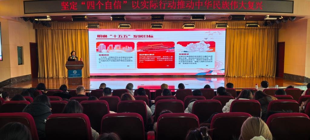 在授课中,她以深厚的理论功底和丰富的实践经验,通过翔实的案例对比,深刻阐释了中国特色社会主义制度的显著优越性。她特别提到,学校始建于1953年,恰逢新中国第一个五年计划实施的开局之年。这一历史节点,不仅标志着新中国工业化建设的起步,更见证了学校与国家发展同频共振的发展历程。随后,她立足“十四五”时期我国取得的重大成就,从经济发展、科技创新、民生改善等多个维度,生动展现了中国特色社会主义道路的正确性和生命力。