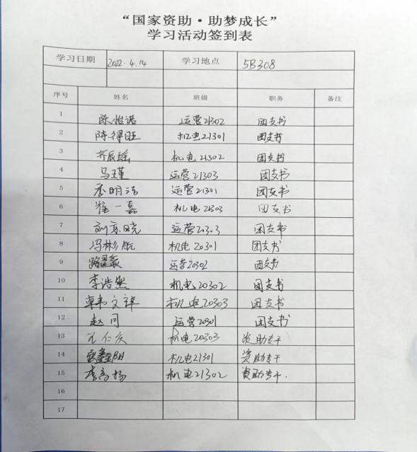 我系于4月14日为2021级资助专干人员开展国家资助政策体系解读,使21级资助专干了解国家资助政策并且熟悉掌握我校资助政策体系,并传达于班级每位同学。