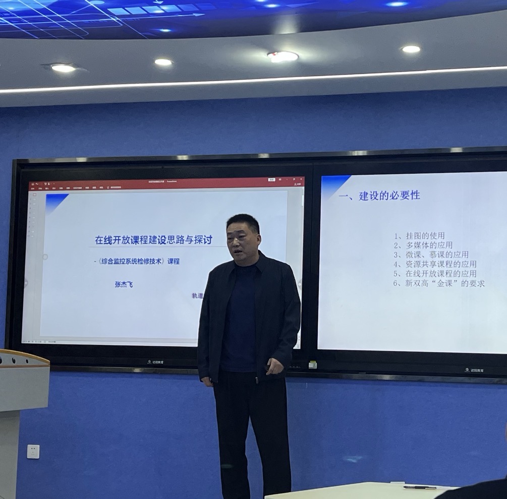 此次教研活动围绕在线精品课程建设的必要性、课程建设情况与建设经验、感悟与探讨三个部分展开。轨道交通学院相关负责同志就《综合监控系统检修技术》省级精品课程展开分享,深入剖析了精品课程建设过程中所面临的痛点与难点,以生动的案例和详实的数据,为在场教师们揭示了课程建设背后的艰辛与挑战。