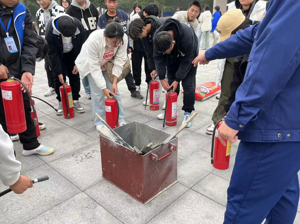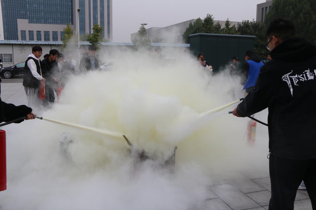 余翔进行了《校园消防安全教育》专题讲座,他以参与的火灾出警经历为引,为大家讲解了火灾现场的逃生自救、灭火器使用方法以及初期火灾扑救与处置等相关知识。随后在教学楼内进行了一次消防逃生安全演练,指导大家在楼内失火的情况下,如何在火场中有秩序地自救逃生。最后,全体参训人员进行了灭火器实操演练。